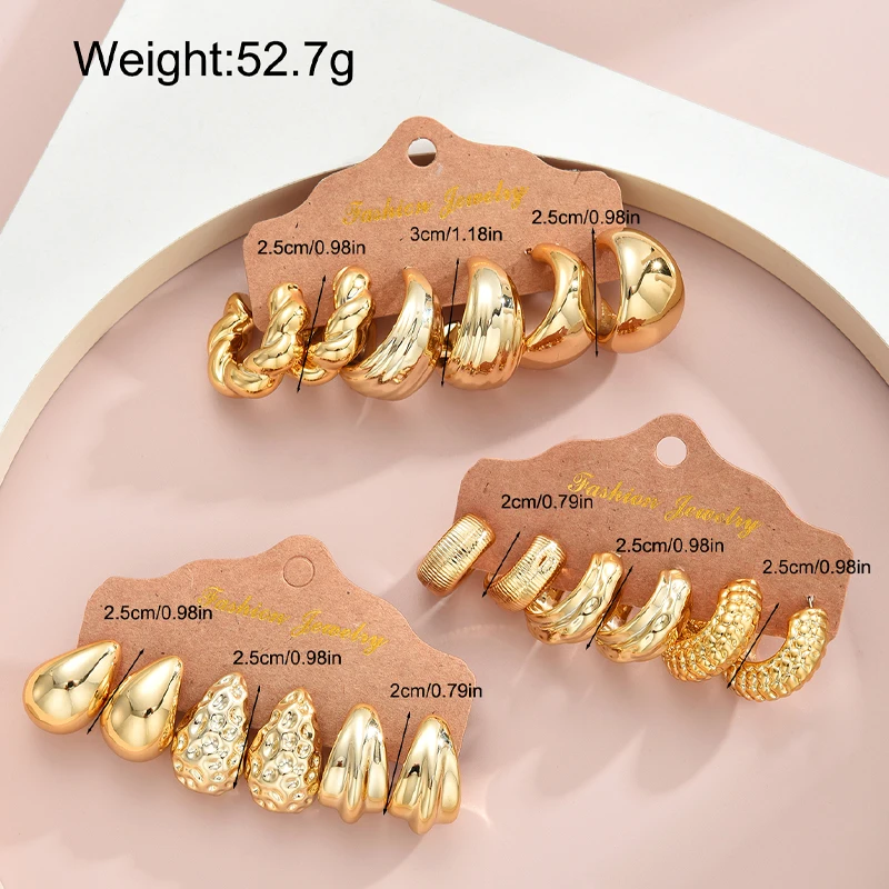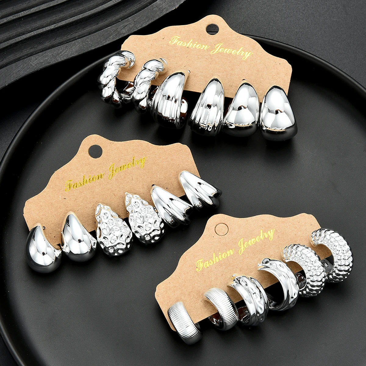 18Pcs Vintage Punk Waterdrop Hoop Earrings – Gold & Silver CCB Earrings for Women, Daily Fashion Jewelry Set